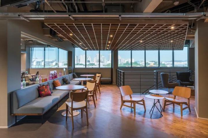 深圳裝飾公司設(shè)計結(jié)合當(dāng)下前沿的設(shè)計理念,打造一個靈動多元的辦公空間。在開放工作區(qū)穿插了眾多形式各異的協(xié)作空間,讓交流與分享隨時隨地。車廂座、看臺式階梯座、入墻沙發(fā)座等設(shè)計元素為空間增添了豐富的趣味性和青春色彩。