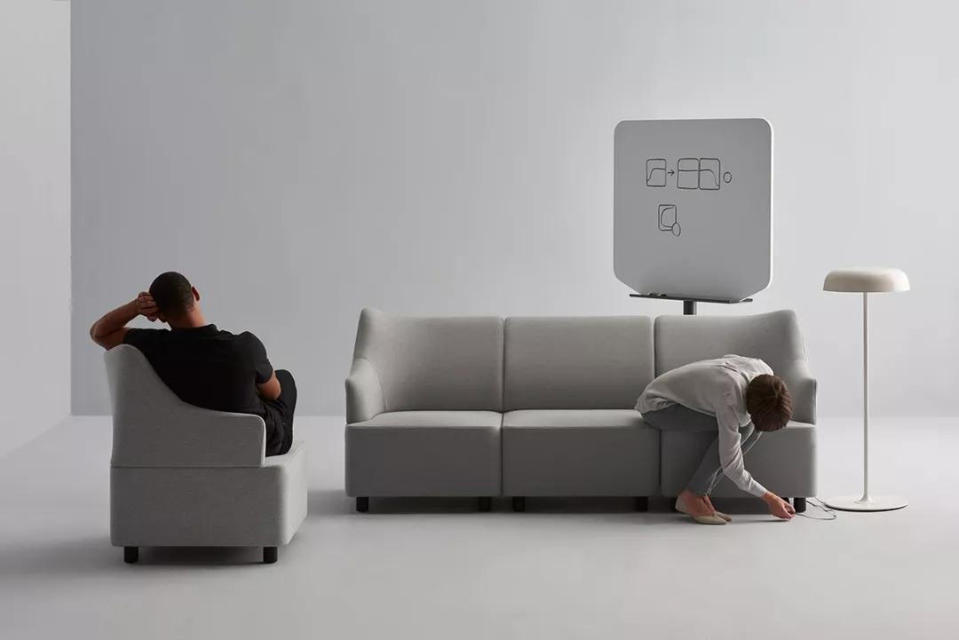 一處大型開放的樓梯連接上下兩個樓層,第三層則由服務(wù)樓梯進(jìn)入。室內(nèi)局部墻面采用面料軟包裝飾,這樣既有吸音功效,又帶來豐富的視覺效果。大型休閑區(qū)也以面料軟體家具來布局,不僅帶來舒適的休閑氣息,同時具有很好的吸音功效。