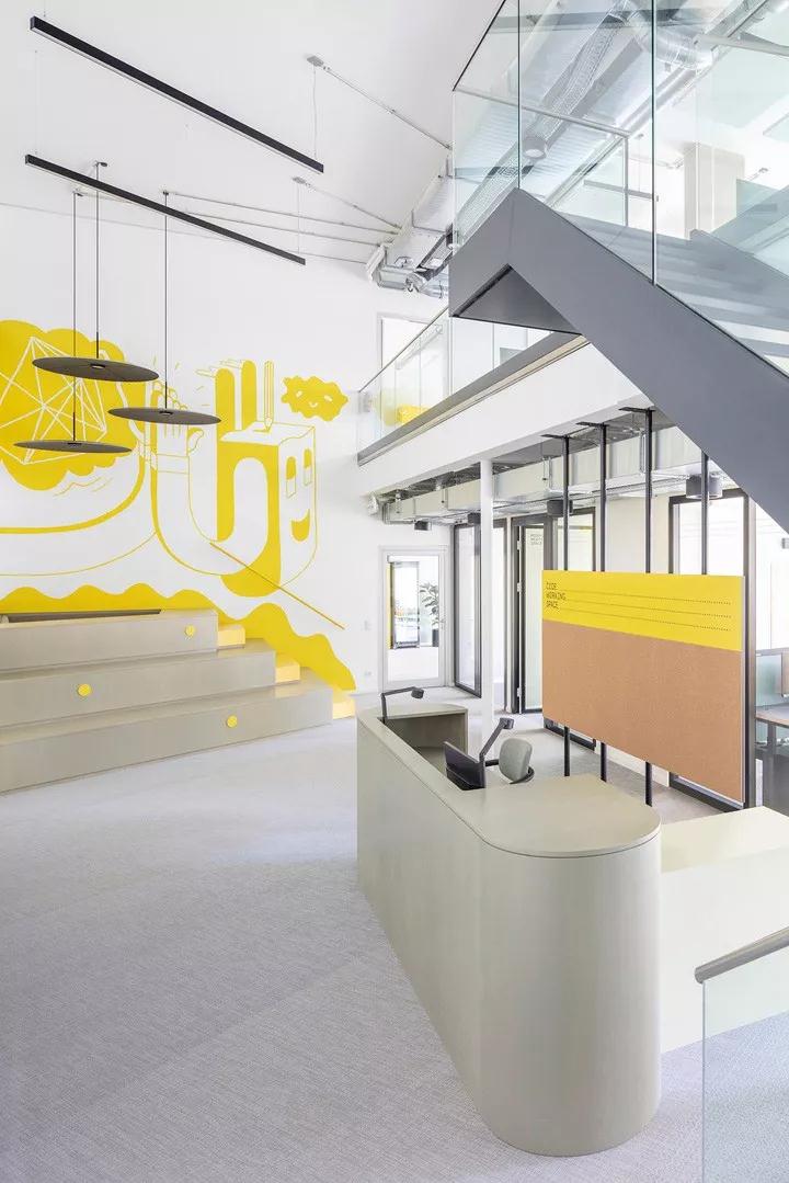 上下兩個樓層共450平方米的面積,還規(guī)劃了一個公共廚房和幾間小會議室;一間帶有小廚房的大型活動空間讓這里具備更多的功能性。