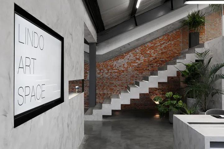 最簡單的混凝土樓梯上嵌有幾何線條照明,就像在梯子上行走一樣,使整個空間更加無形,并營造出寧靜自然的風(fēng)格。
