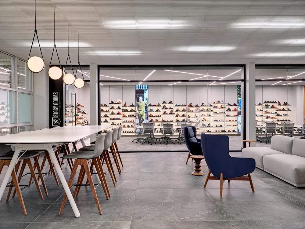 全新設(shè)計(jì)的品牌陳列室位于一樓的中心,接待批發(fā)和零售客戶。它目前以虛擬方式顯示。每個(gè)房間都代表著一個(gè)品牌的體驗(yàn)品質(zhì);但同時(shí),所有的房間都是由相似的材料連接起來的。設(shè)計(jì)團(tuán)隊(duì)規(guī)劃了一個(gè)中央接待空間,為所有品牌房間服務(wù),還有一個(gè)安靜的工作或午餐空間,直到他們可以與客戶面對(duì)面交流。