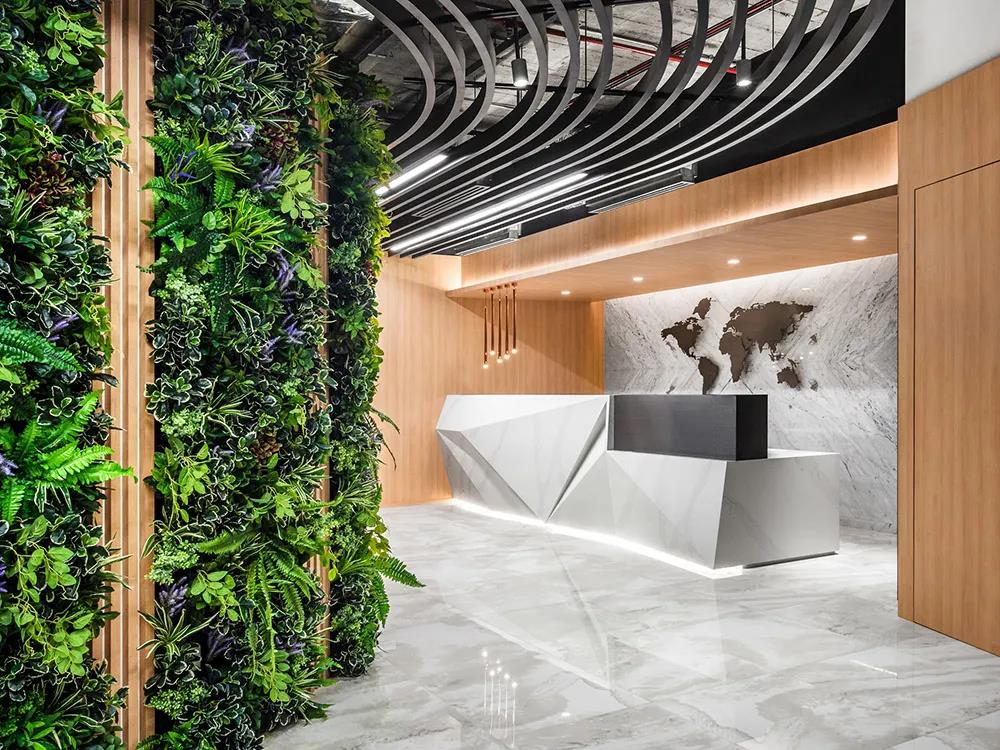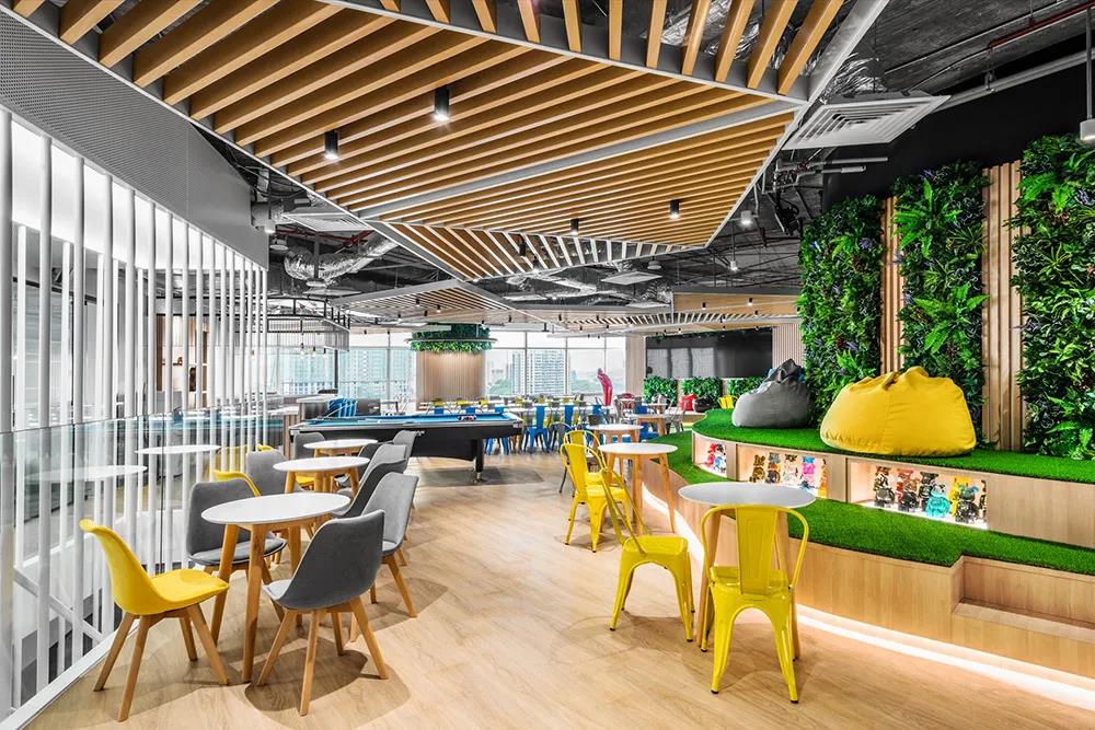 打造綠色可持續的辦公環境,使其契合綠能公司的文化理念,裝飾公司是本案的設計主題。此外,它還需要類似于谷歌的深圳辦公室裝修功能設施,為員工24小時提供便利。設計靈感來源于在公園散步時的愉悅心情,深圳裝飾公司營造出與公園相似的室內環境,讓員工仿佛置身于開闊的室外環境中,呼吸著新鮮空氣。如此一來,沒有了四壁的束縛,人就可以更加的放飛思緒,翱翔于天際。在空間規劃上,深圳裝修公司設計團隊引入自由流動的開放理念,以盡可能少的隔斷營造開放的空間感,最大限度地利用自然采光,營造溫馨明亮的空間氛圍。室內樓梯將上下兩層緊密相連,靠近樓梯處規劃了大型休閑合作空間。這個多功能協作空間最多可容納 200 人。深圳裝飾公司這里還規劃了大型派對空間和自助餐廳,可舉辦可容納100人的公司活動。辦公室還專門規劃了一個大廳空間,向客戶展示公司的發展。此外,裝飾公司還有大型正式會議室、形式多樣的一系列會議室、可供兩人洽談的工作艙、圖書館、健身房/舞蹈室、配備卡拉OK系統的游戲室、音樂室、小睡艙、小吧臺、兒童房和哺乳室(供打算帶孩子上班的父母使用)、培訓室等雜項空間。